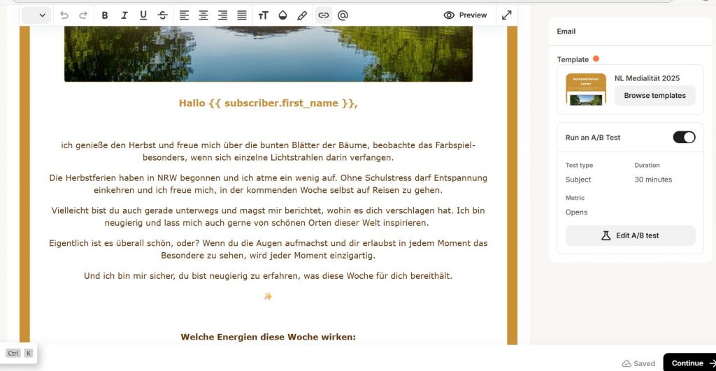 Sonntag Abends schreibe ich immer meinen Bewusstseinsletter für Montag. Denn diesen versende ich bereits früh morgens um 6h. Und es ist utopisch, dass ich das in realtime an einem Montag Morgen schaffe. Montags gebe ich immer einige Impulse und energetische Einblicke in die Wochenenergie.